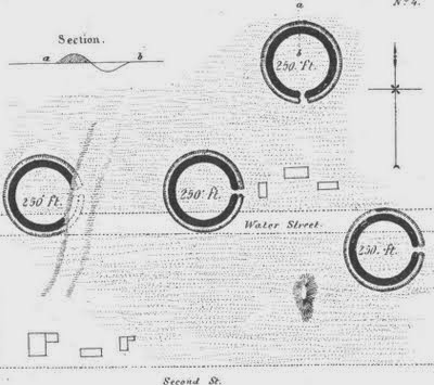 One-fourth of a mile to the north-west of this work is a small circle two hundred and fifty feet in diameter, accompanied by two large mounds.